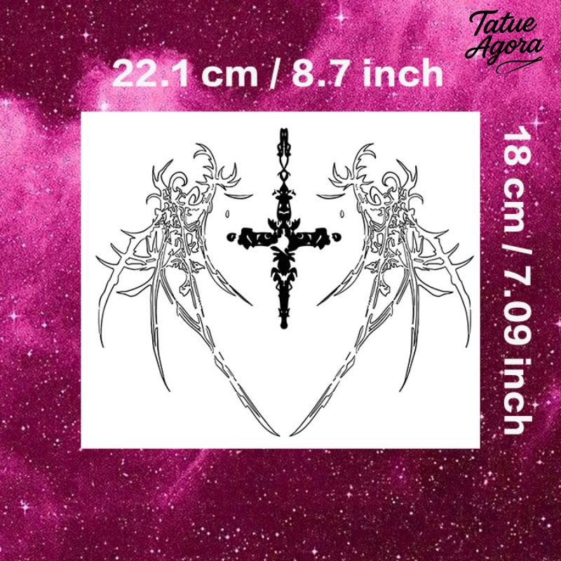 Cruz Gótica Simétrica com Espinhos – Tatuagem Temporária Sensual à Prova d’Água