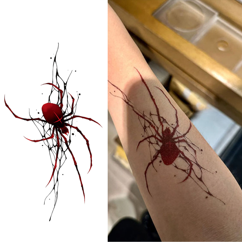 Tatuagem Temporária Aranha Vermelha Sombria – Tattoo Realista Misteriosa à Prova d’Água dura até 15 dias