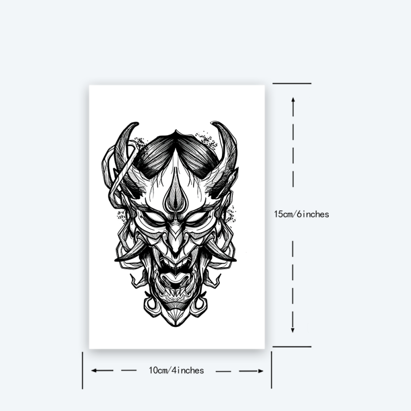 Tatuagem Temporária Máscara Oni Japonesa – Tattoo Samurai Realista à Prova d’Água dura até 15 dias