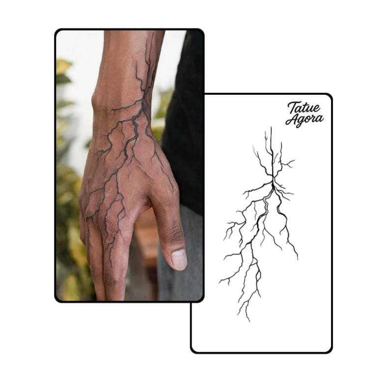 Essa tatuagem carrega o simbolismo da energia vital que corre pelo corpo, como se cada traço fosse um fluxo invisível de poder. Os galhos finos lembram tanto veias quanto relâmpagos, unindo o que é interno e o que é externo: a vida que pulsa dentro e a força da natureza que explode fora.